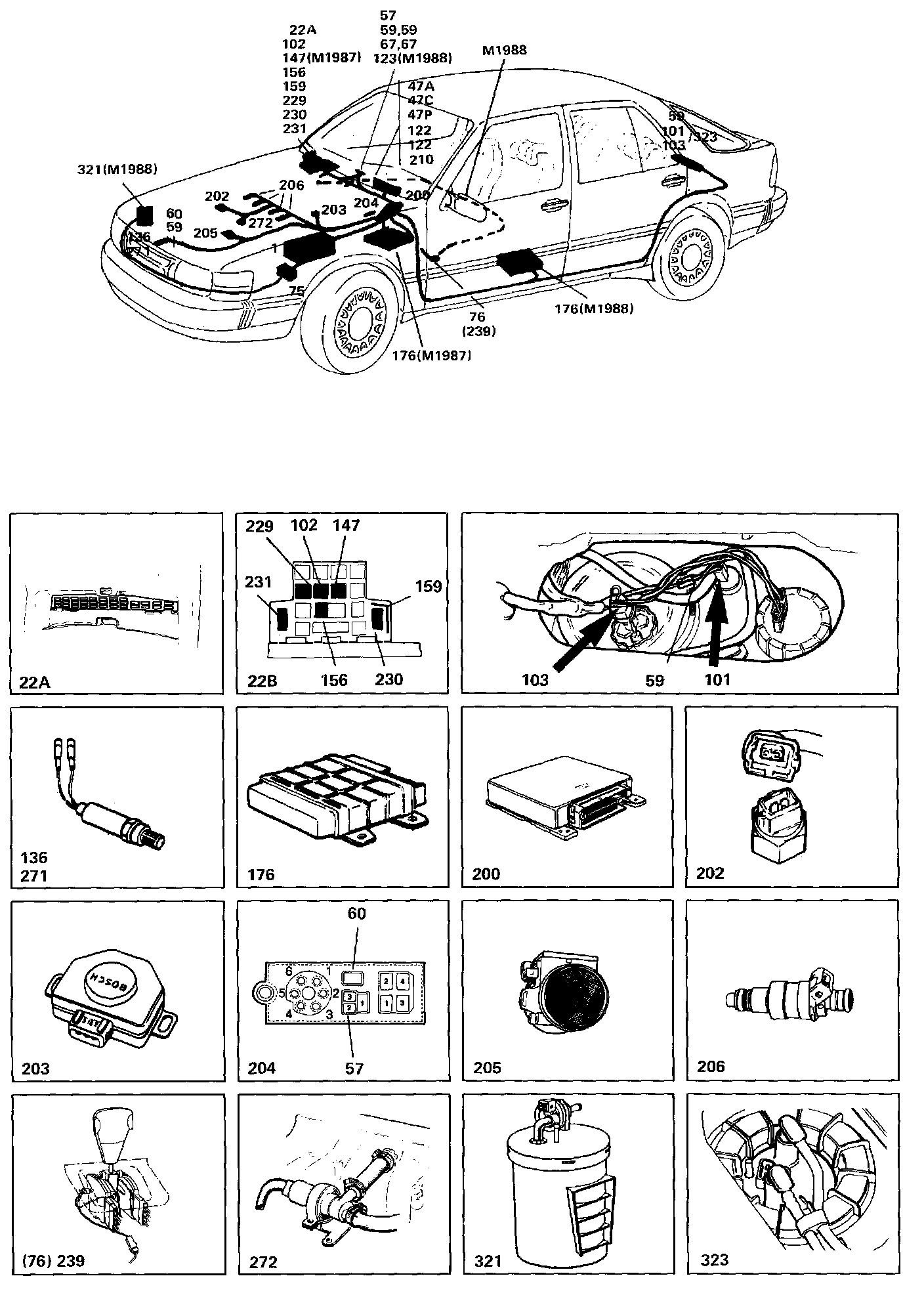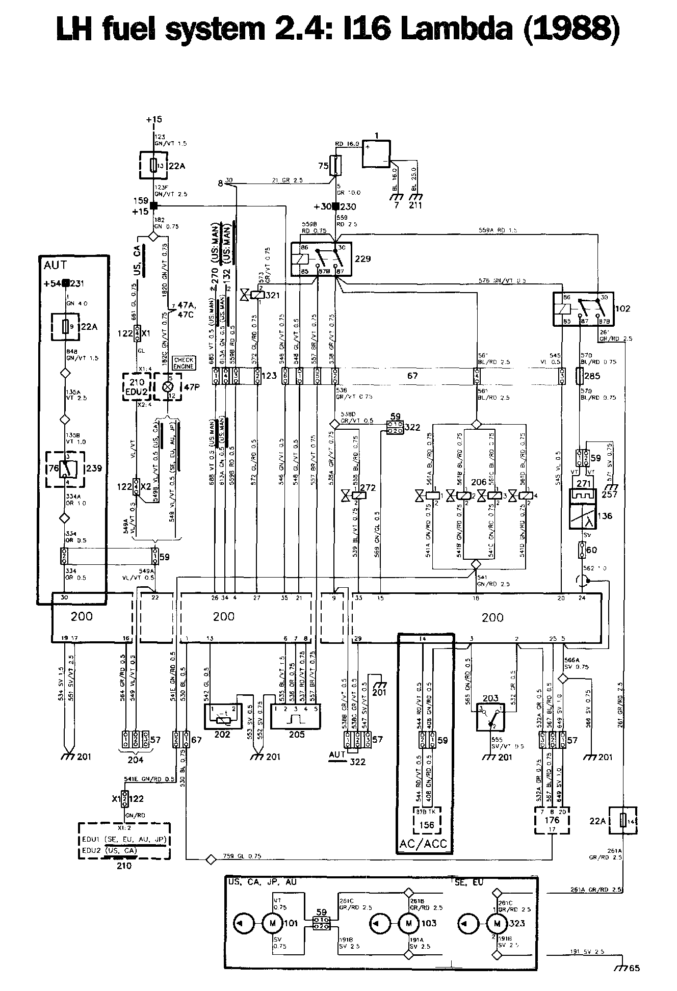 Some sixteen-valve engines with Lambda are equipped with version 2.4 of the Bosch LH Jetronic fuel injection system, which is an update of version 2.2. LH is an abbreviation of Luftmassenmesser Hitzdraht (Air mass meter with hot filament). The fuel injection system is controlled and monitored by control unit 200, which includes a microprocessor.
