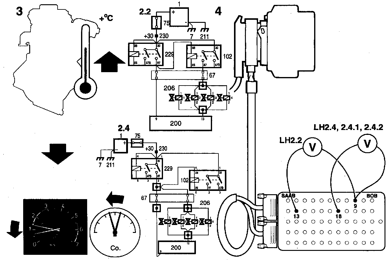 3 Check engine speed during the warm-up period. Engine speed and the CO content (cars without cat.) should decrease as engine temperature increases.