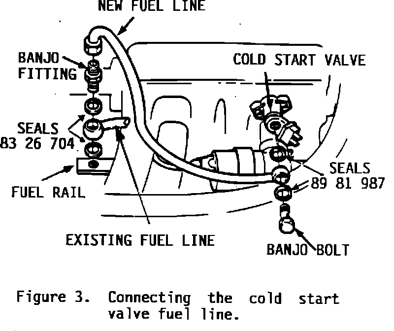 5. Connect the fuel line to the cold start valve using the banjo bolt and two Seals (P/N 89 81 987) (Figure 3).