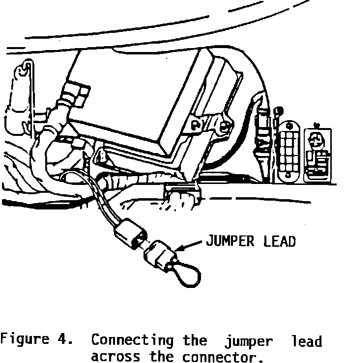 8. Locate the two-pin connector with green/yellow and grey/white leads at the LH fuel injection ECU. Connect the jumper lead provided in the kit across the connector (Figure 4).
