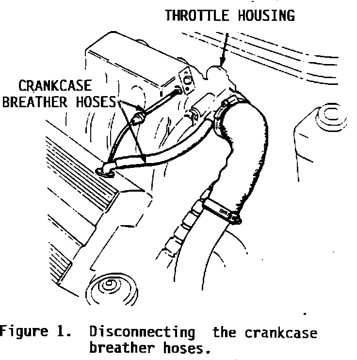 1. Disconnect the crankcase breather hoses from between the camshaft cover and the throttle housing (Figure 1).