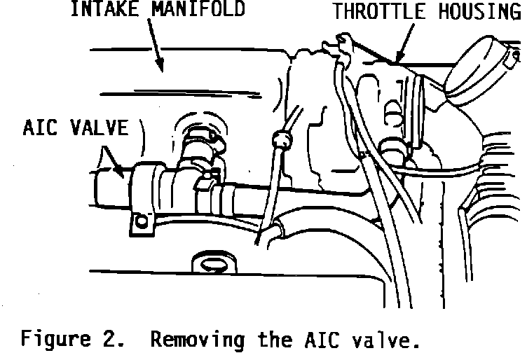 3. Remove the automatic idle control (AIC) valve complete with clamps, rubber ring and hoses from the intake manifold and throttle housing (Figure 2).