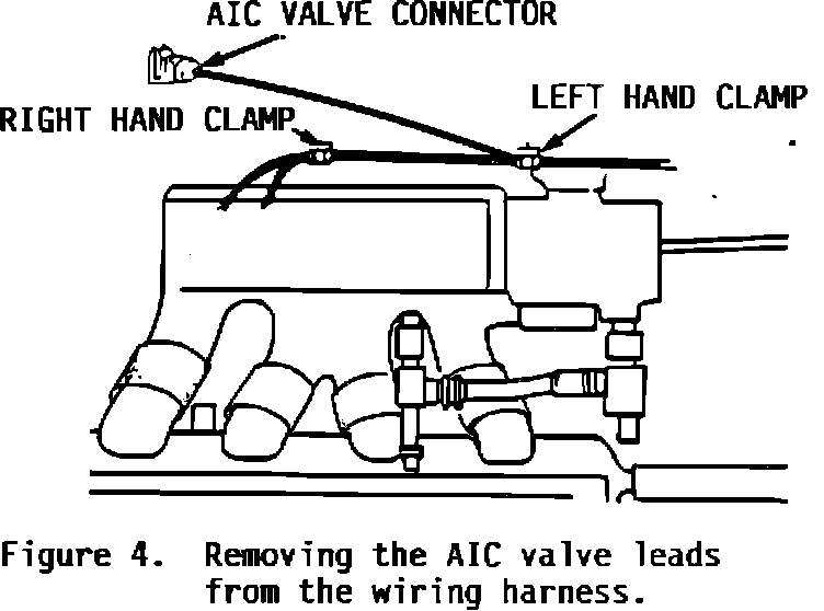 5. Carefully cut open the wiring harness sheath as far as the left hand clamp and remove the leads for the AIC valve (Figure 4).
