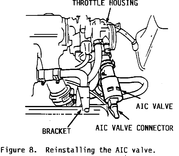 11. Reinstall the AIC valve in its new location with two hoses (P/N 74 86 624) and the existing hose clamps between the hose bracket and throttle housing (Figure 8).