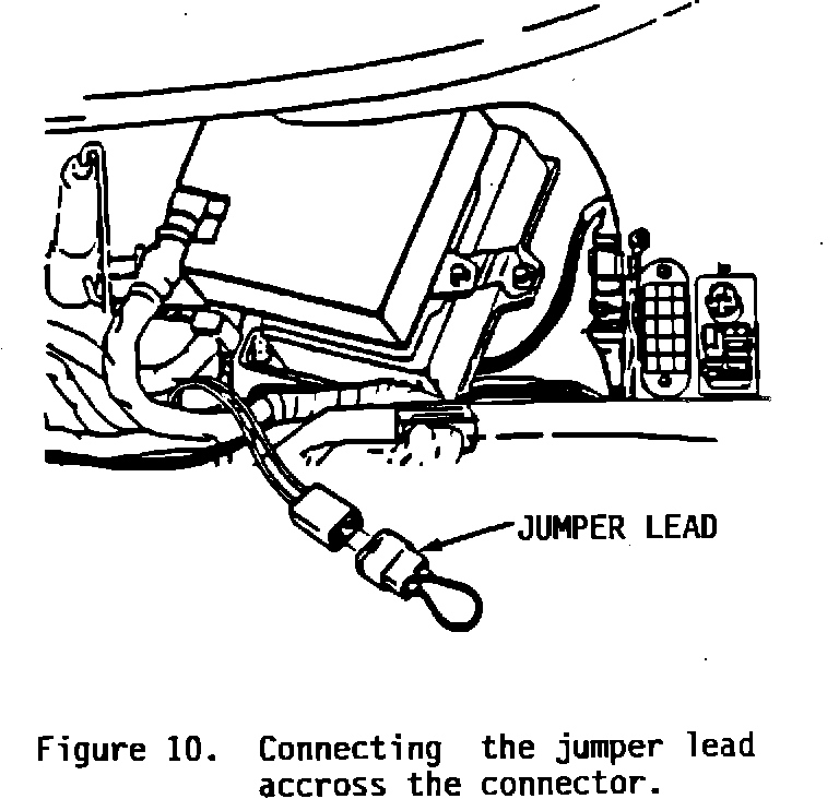 20. Locate the two-pin connector with green/yellow and grey/white leads at the LH fuel injection ECU. Connect the jumper lead across the connector (Figure 10).