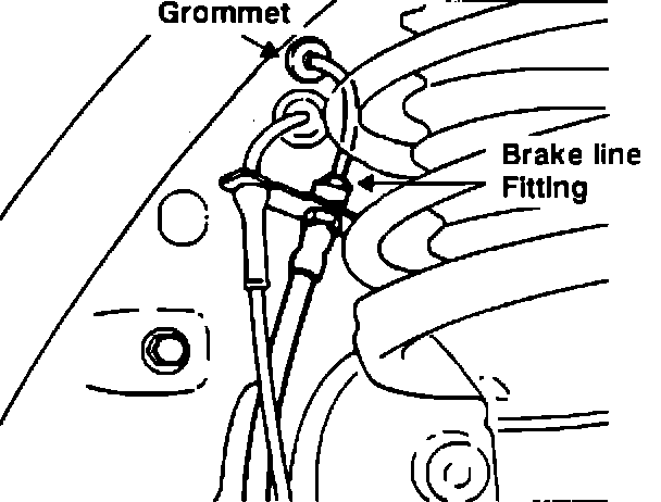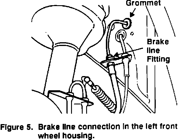 ends. Release the rubber grommet and disconnect the brake line fitting in the wheel housing as shown in Figure 5.