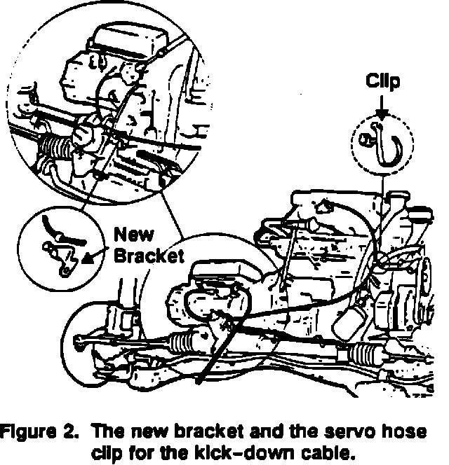 2. Disconnect the cable from the servo hose clip (Figure 2). Remove and discard any other existing clips or cable ties attached to the kick-down cable.