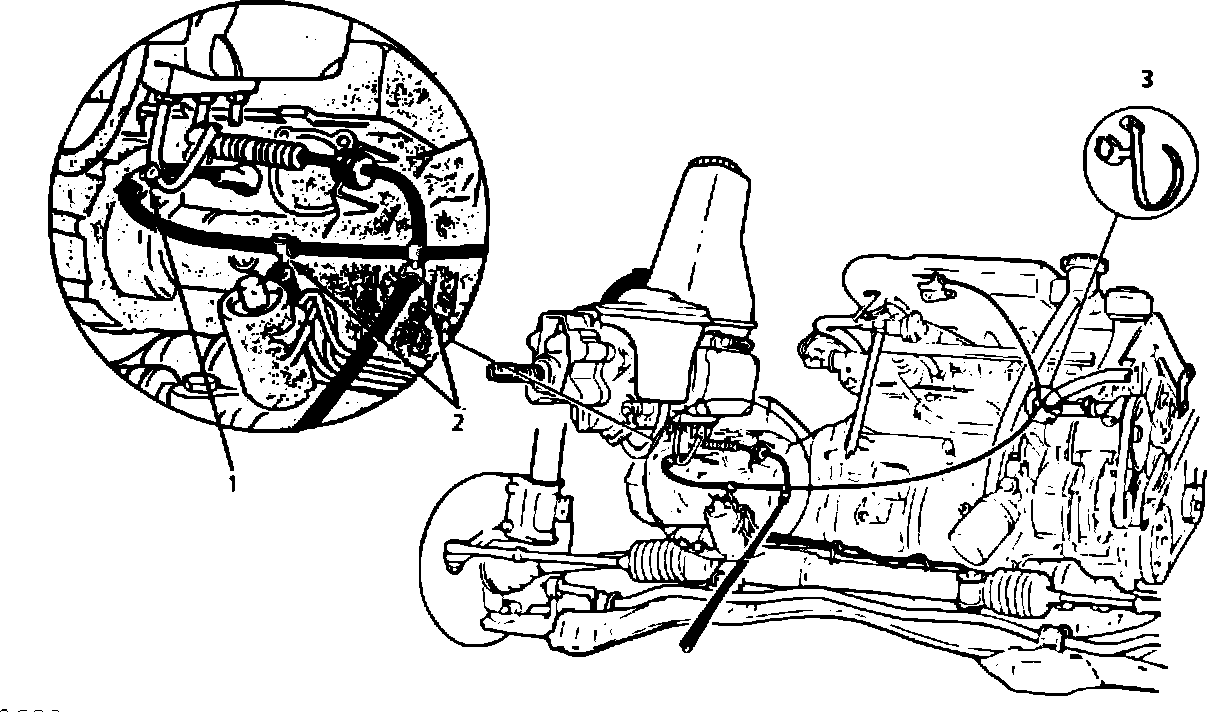 Previous to the introduction of ZF exchange units, the M87 Turbo transmission superseded to the M88 Turbo transmission. If an M88 transmission was installed in an M87 car, an additional clip (position 3) is required to secure the throttle cable because the M88 cable is longer than the M87 cable.