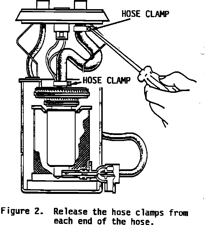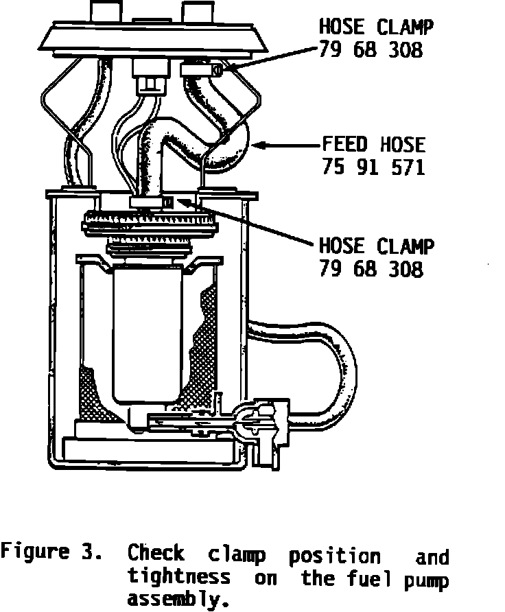 3. Position the two new hose clamps on the new feed hose and install on the fuel pump assembly. If necessary, dip the hose ends in warm, soapy water to facilitate installation. Check clamp position and tightness to ensure clearance from the electrical leads (Figure 3).