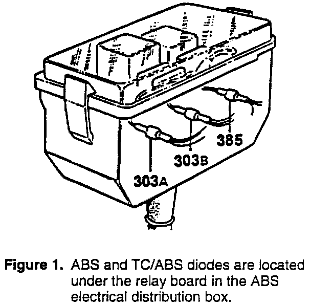 It may sometimes be difficult to diagnose and locate a failed diode in either the ABS or TC/ABS system. This TSB describes the most common fault symptoms as well as suitable methods of fault diagnosis and diode replacement, Figure 1.