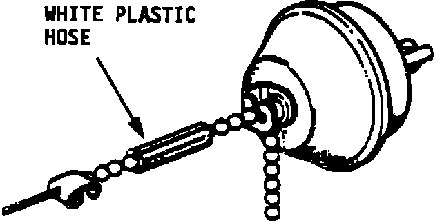 2. Inspect the ball chain connecting the throttle pedal to the vacuum regulator for the cruise control (Figure 1). If a white piece of hose has been fitted to the chain, remove the hose and proceed to step 3.