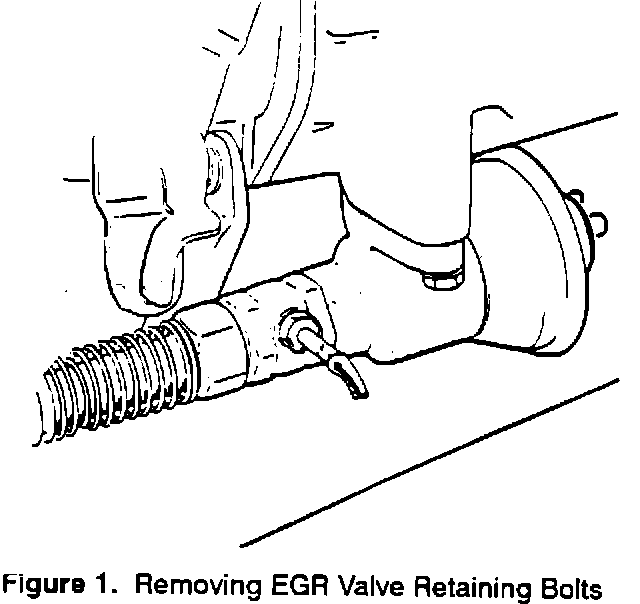 1. Remove the EGR valve retaining bolts and remove the EGR pipe from the exhaust manifold. Lift out the valve and pipe (figure 1).