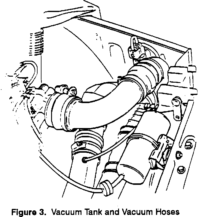 3. Remove the vacuum tank and its vacuum hoses. Plug the hose connection on the intake pipe and the nipple on the pressure pipe by means of rubber plug P/N 83 35 614 (figure 3).