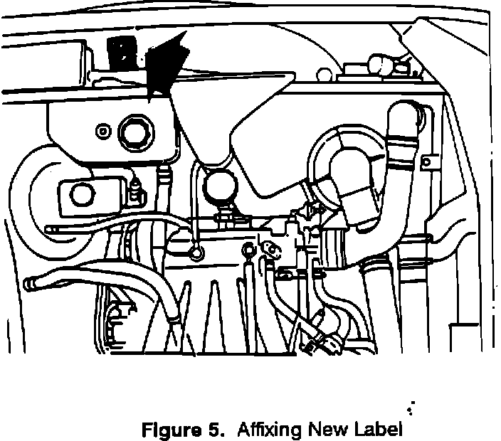 5. Remove the existing emission control label (using a heat gun), clean the surface and affix a new emission control label on the left-hand inner fender in front of the fuse box (figure 5).