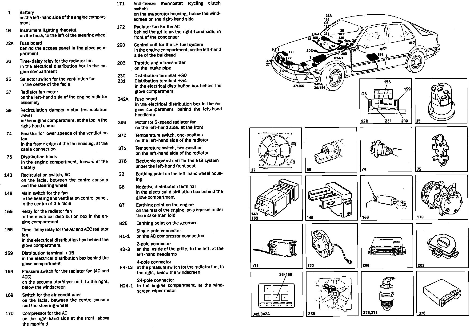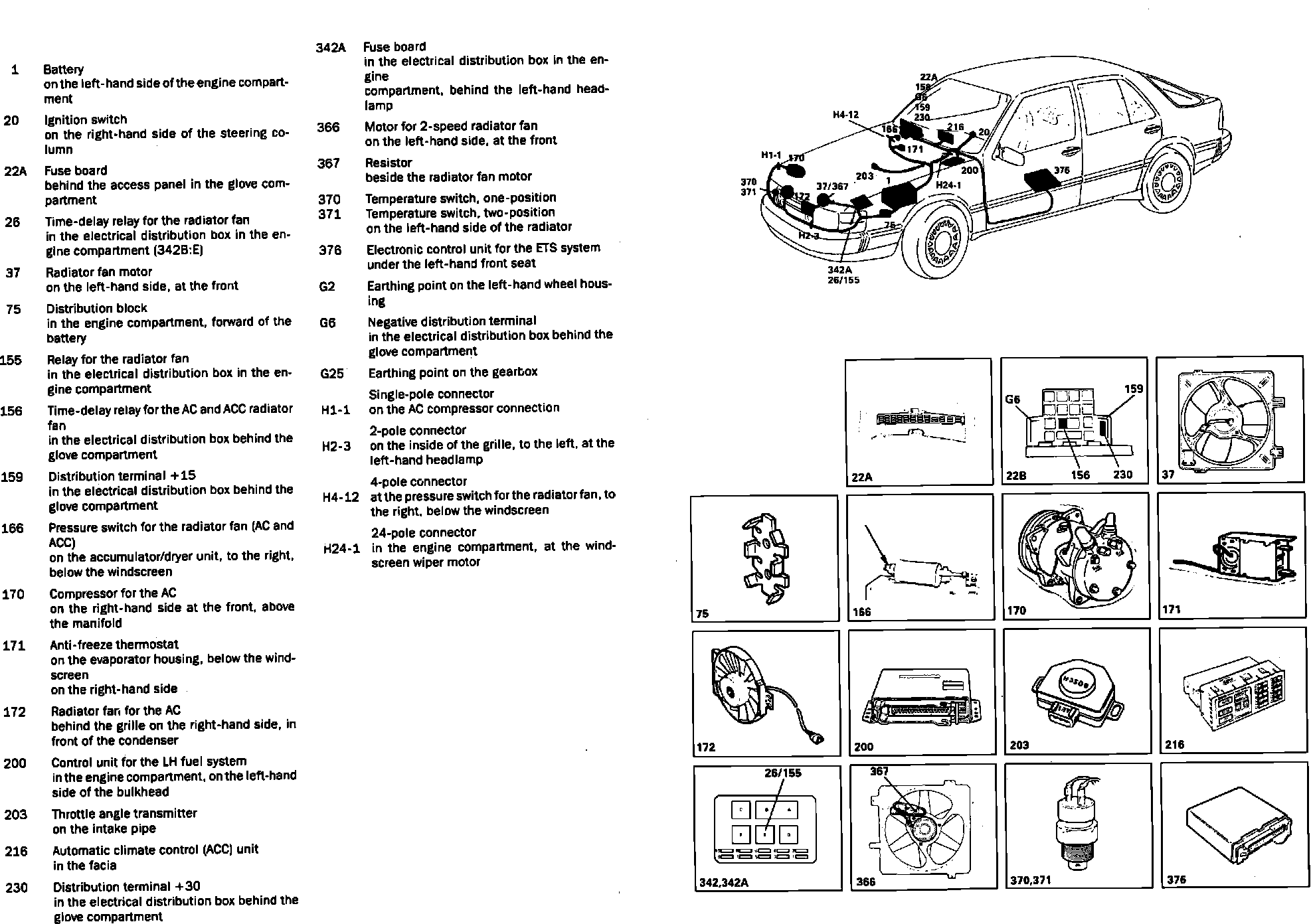 Automatic climate control (compressor & radiator fans) component locations: