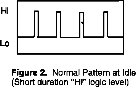 ^ With the throttle closed, you should find a square wave with a short "HI" logic level (green LED much brighter than the red one) and a long duration "LO" logic level. (See Figure 2.)