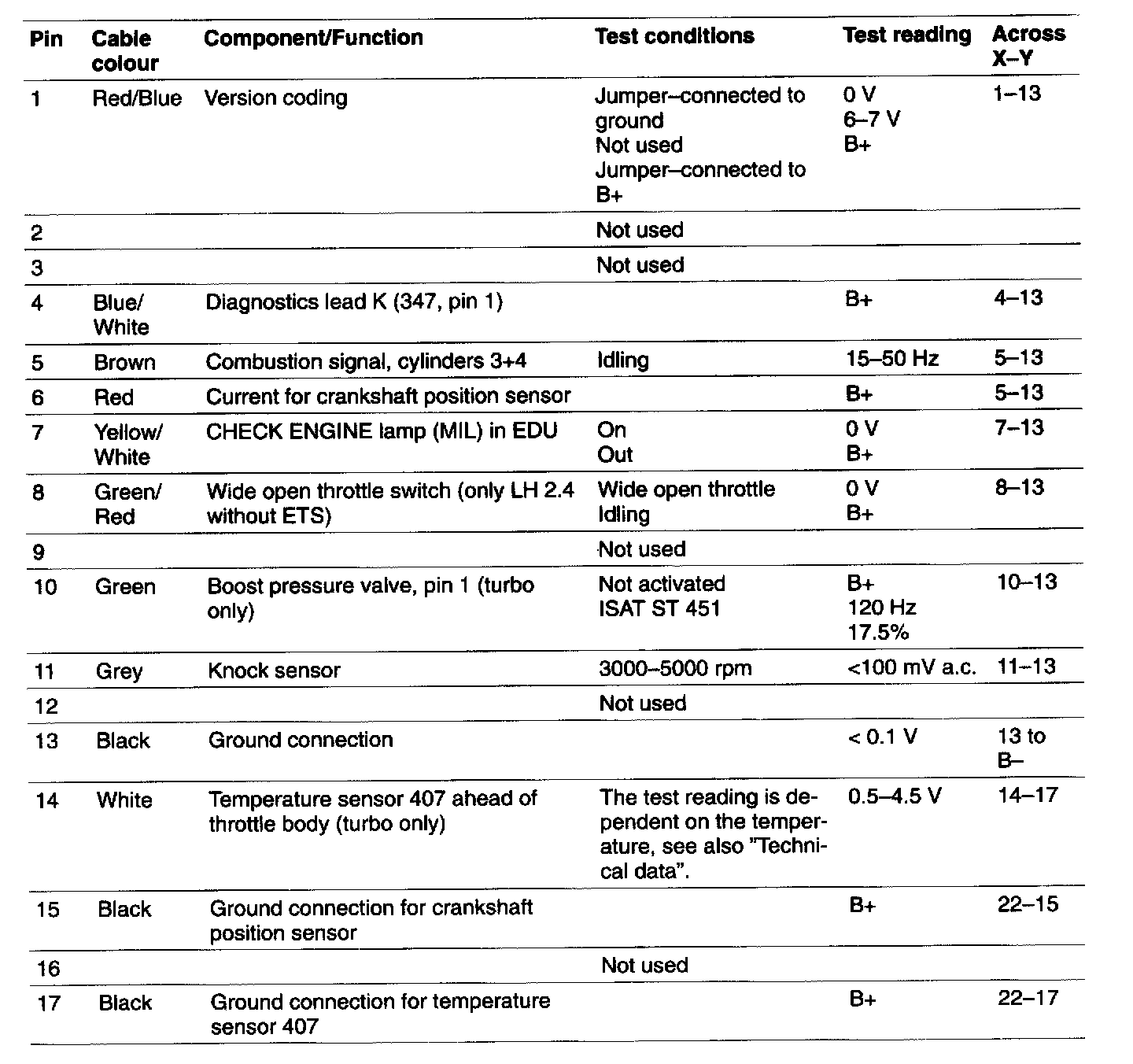 - All test readings are for an engine at normal operating temperature.