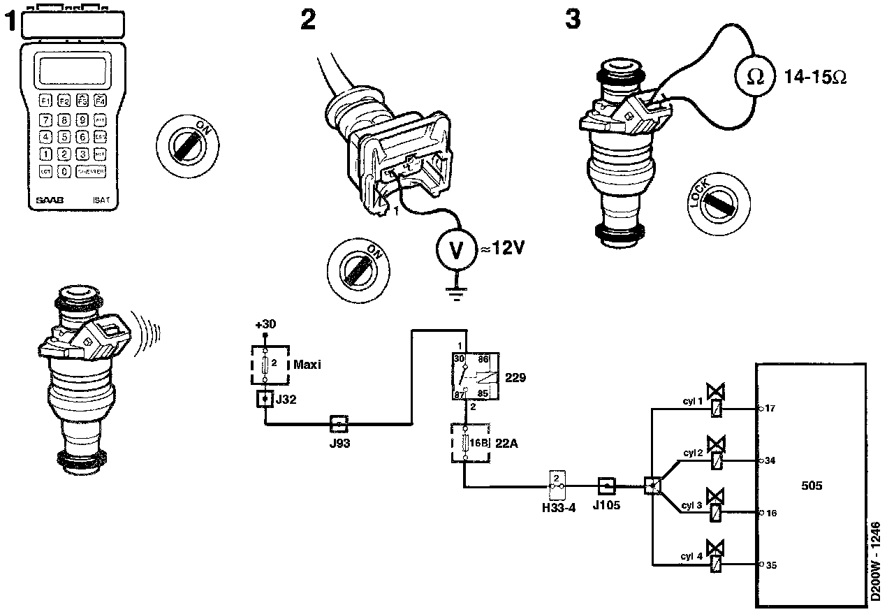 1. Activate the ISAT command "INJECTOR 2" in the "ACTIVATE" menu and listen to check whether the valve is working.