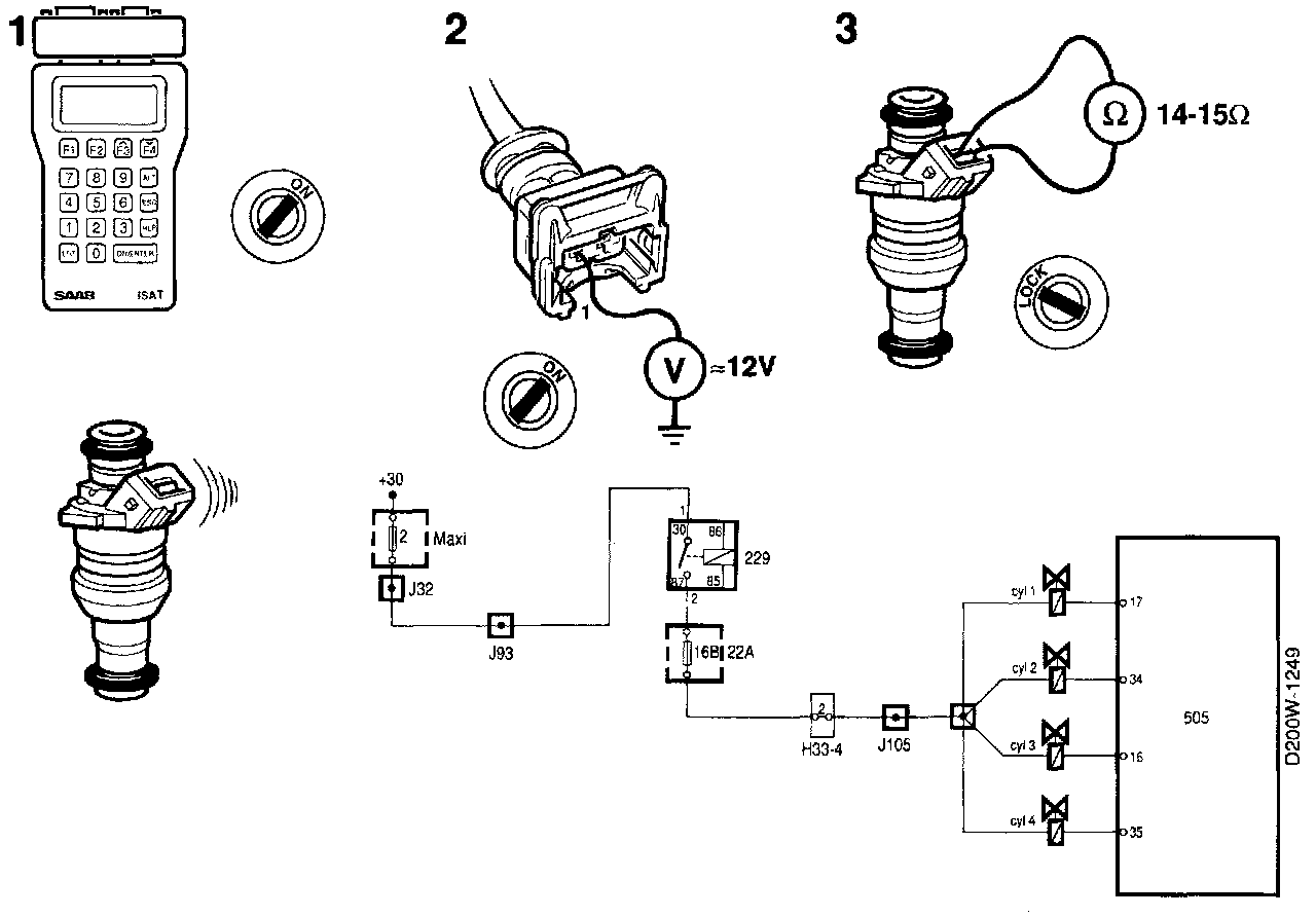 1. Activate the ISAT command "INJECTOR 4" in the "ACTIVATE" menu and listen to check whether the valve is working.
