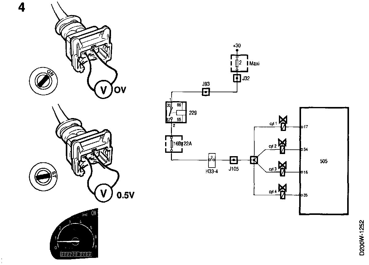 Injector 4, output from control module low/high,