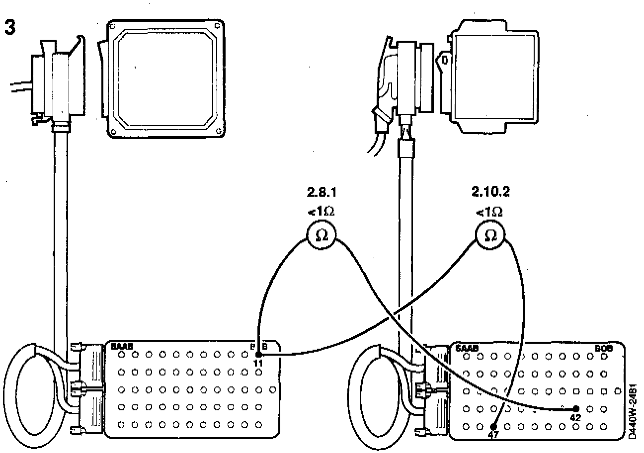 If the ohm-meter shows the wrong value, check and if necessary, remedy the cable and the connector.