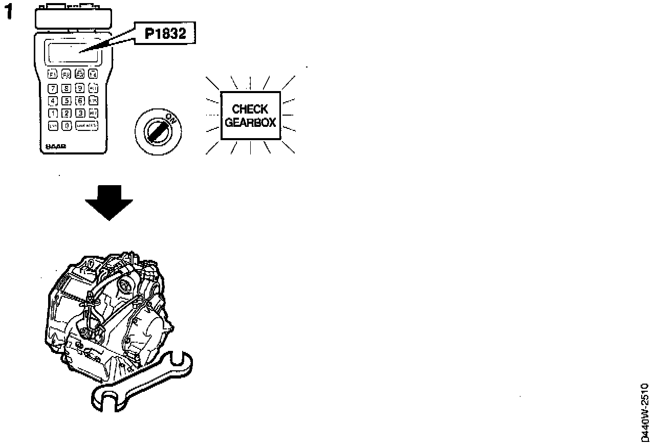 Warning lamp CHECK GEARBOX lit. The system's emergency program is activated.