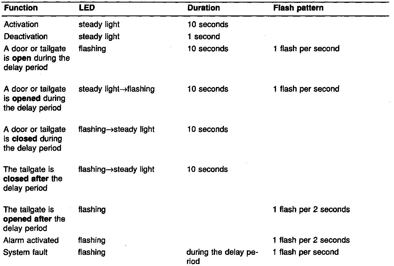 Mounted on the dashboard is an LED which flashes at different rates in accordance with different conditions.
