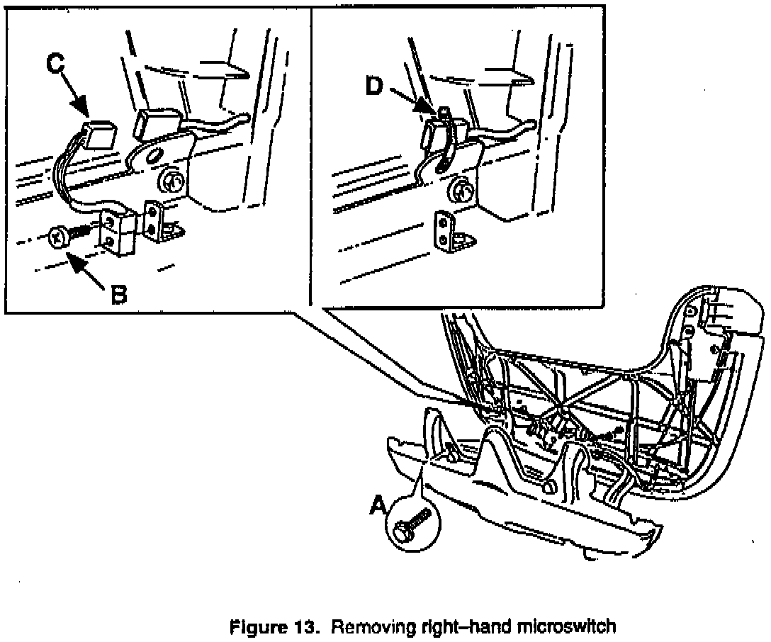 15. Remove the screws securing the righthand microswitch as indicated in Figure 13.B.