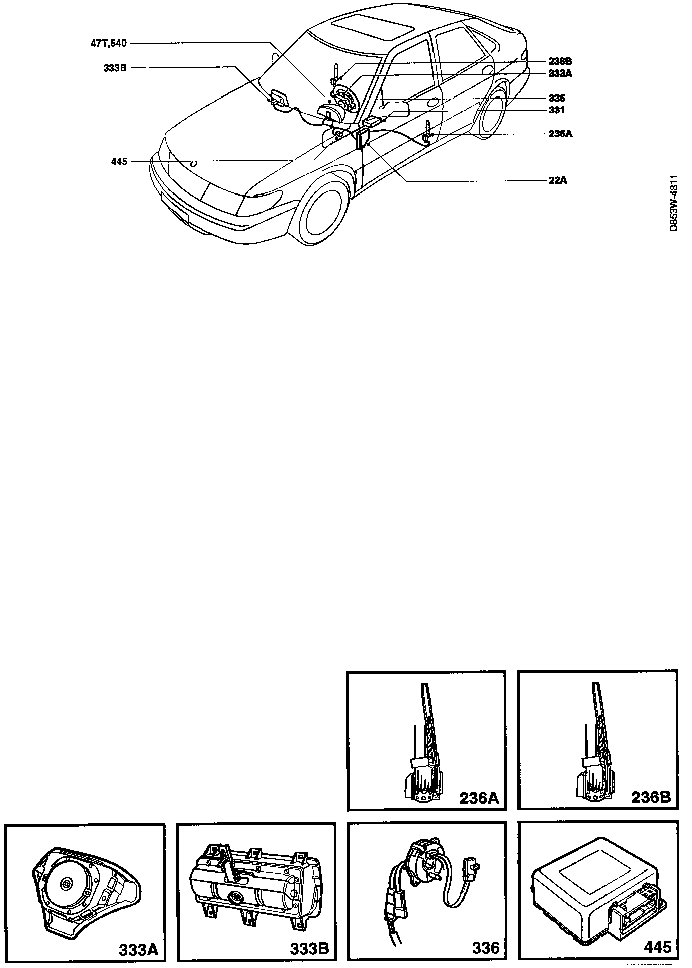 236B Seat-belt tensioner, passenger, in the B pillar.