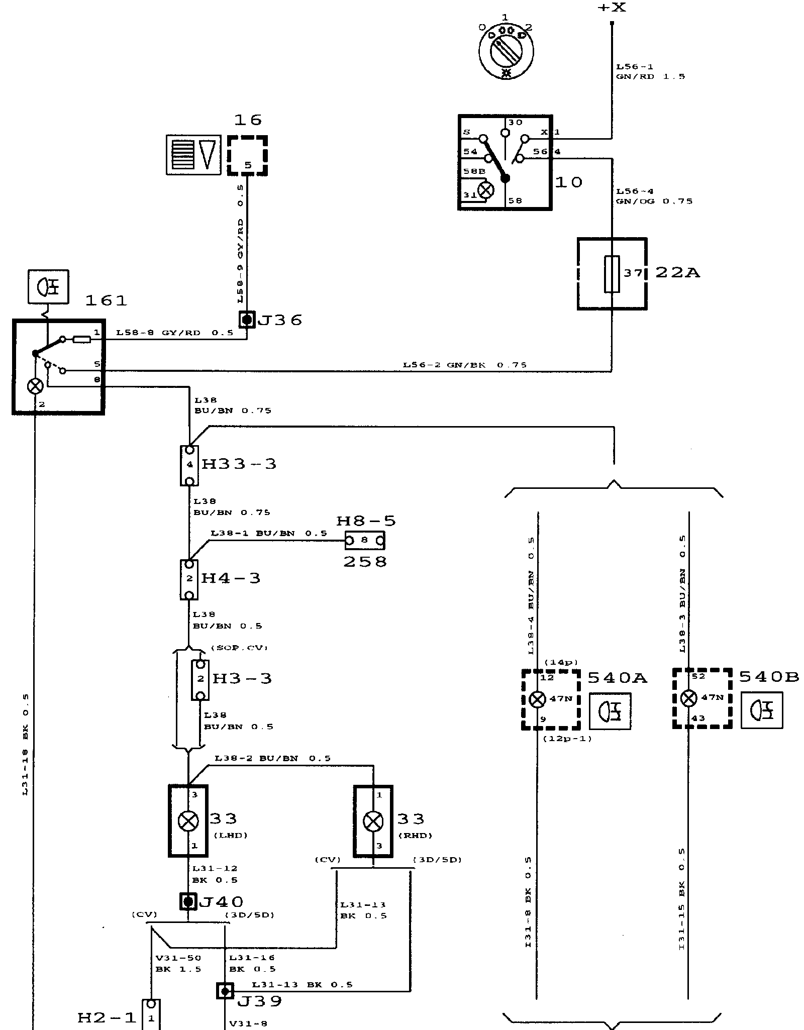 The rear fog light on a trailer, if any, is supplied with current via connector 258 (H8-5).