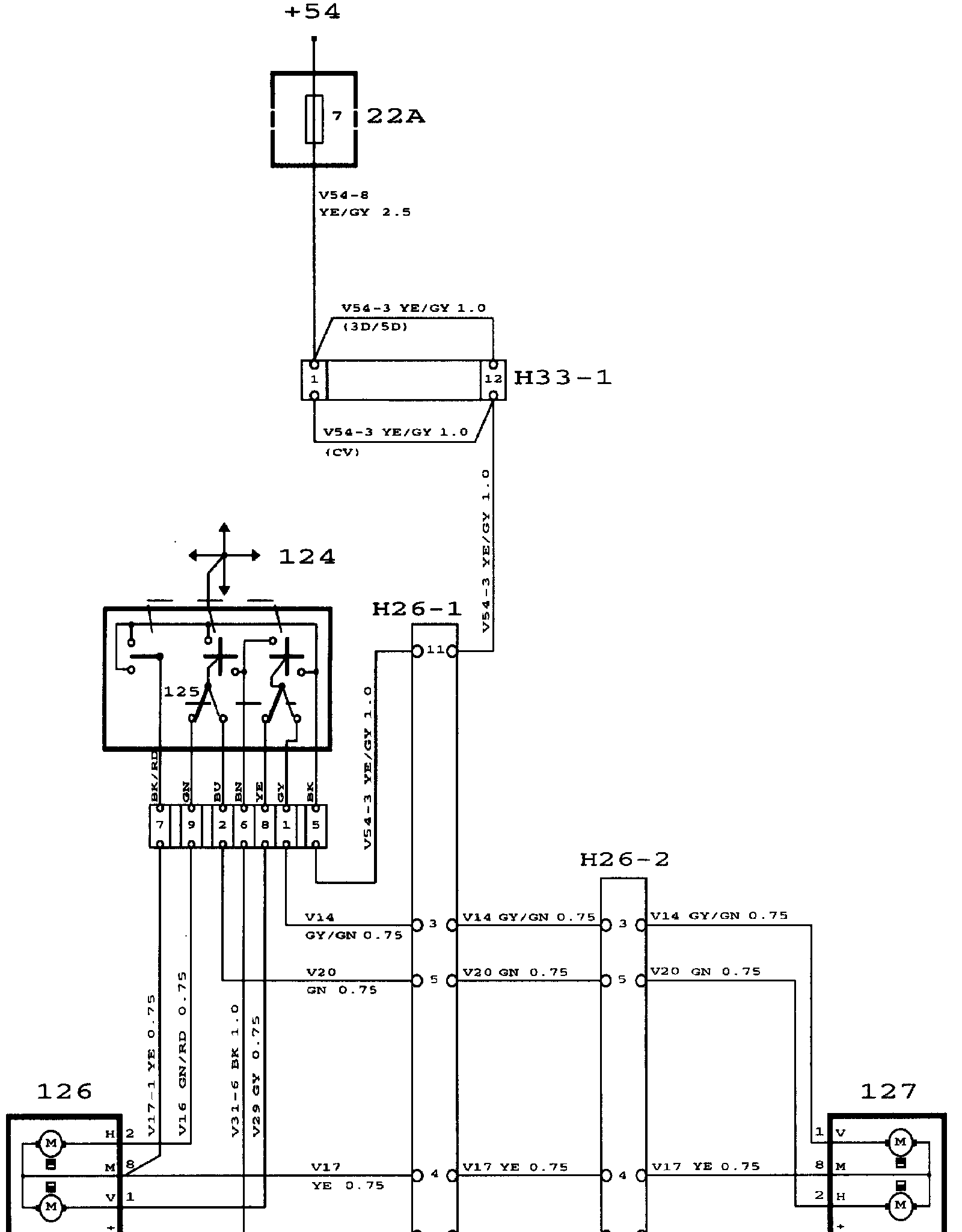 Current is supplied via fuse 7 to pin 5 of switch 124, which has four positions.