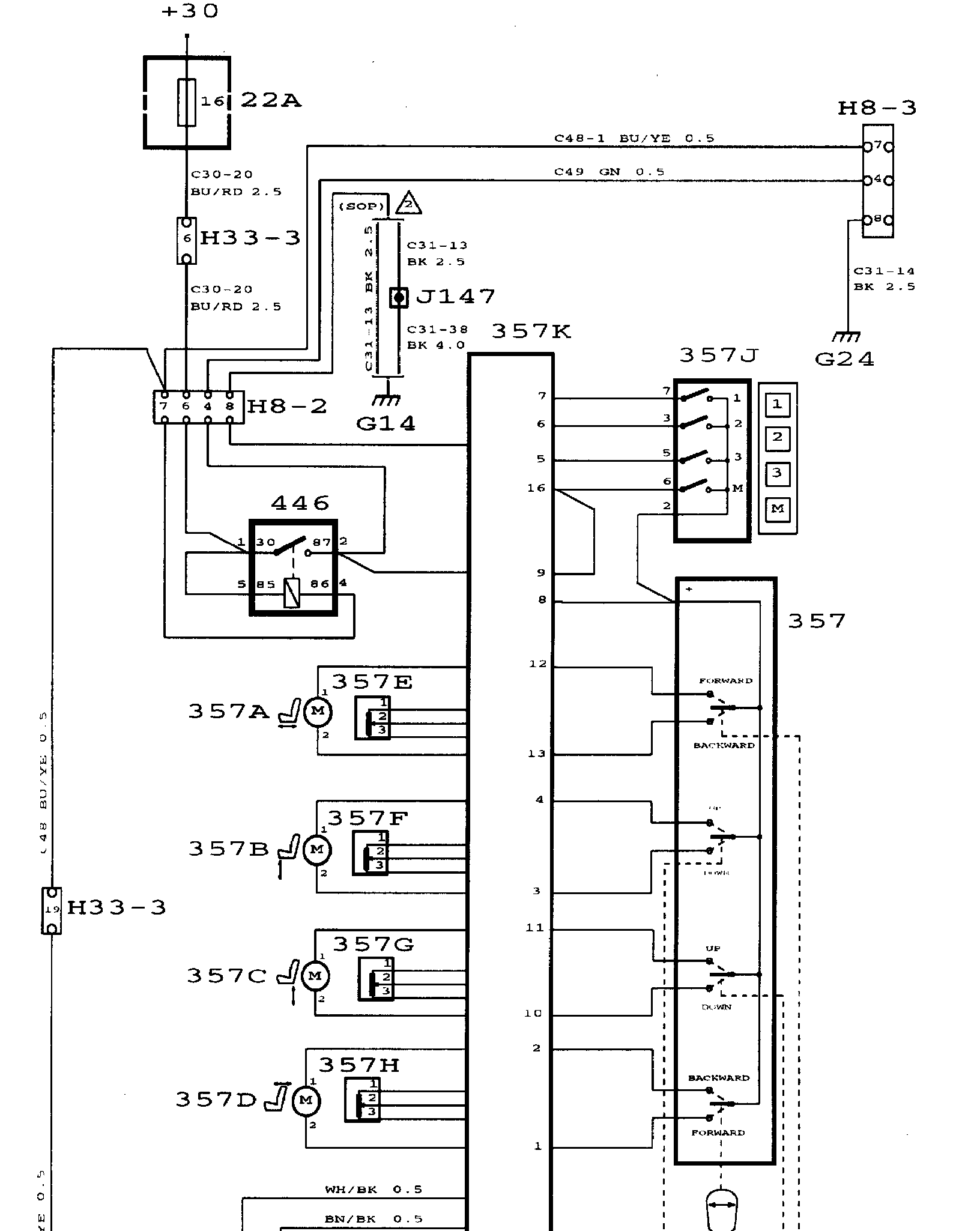 357E-H Position sensors, electrically adjustable seat with memory, under the seat on each motor shaft.