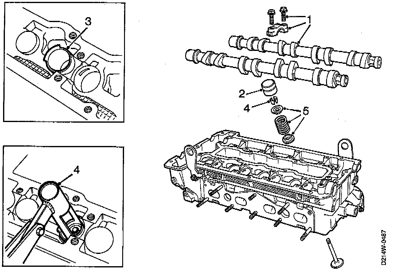 1. Remove the camshaft bearing caps and lift out the camshafts.