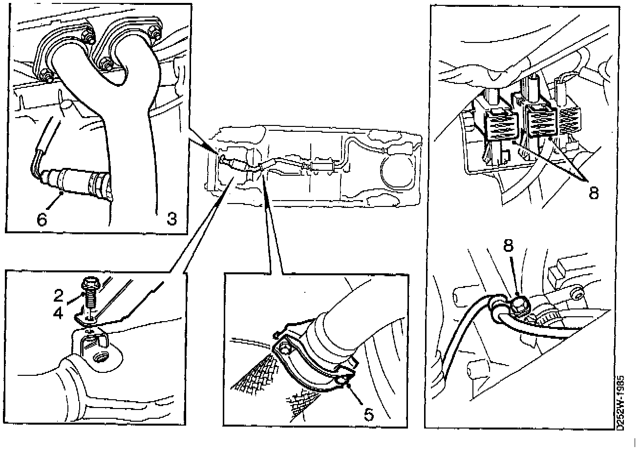 1. Disconnect the oxygen sensor's cables, undo the cable clamp and the clip and lift up the car.