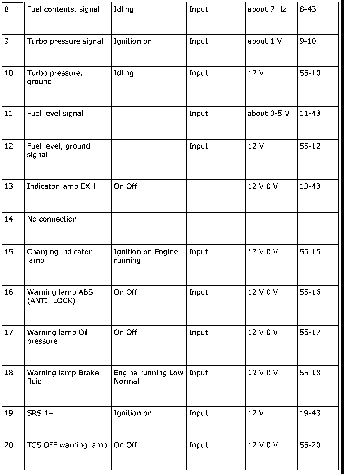 Test Readings, Pins 8 - 20