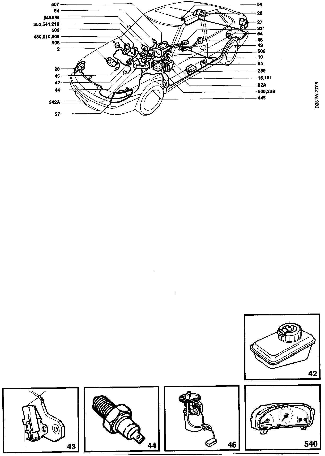 44 Oil pressure sensor 4-cyl: below intake manifold V6: on engine oil pump body.