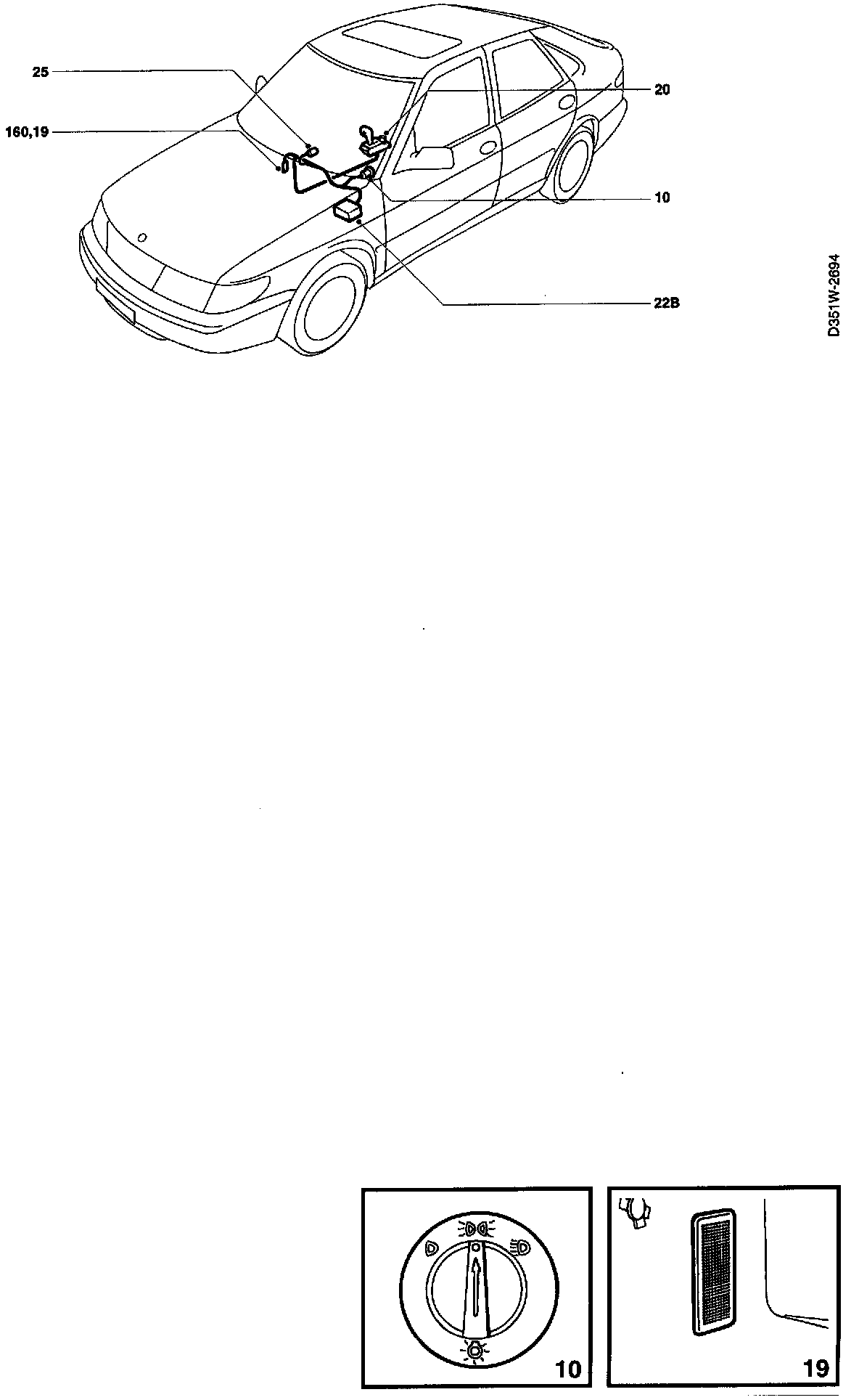 10 Lights switch between steering wheel and driver's door.