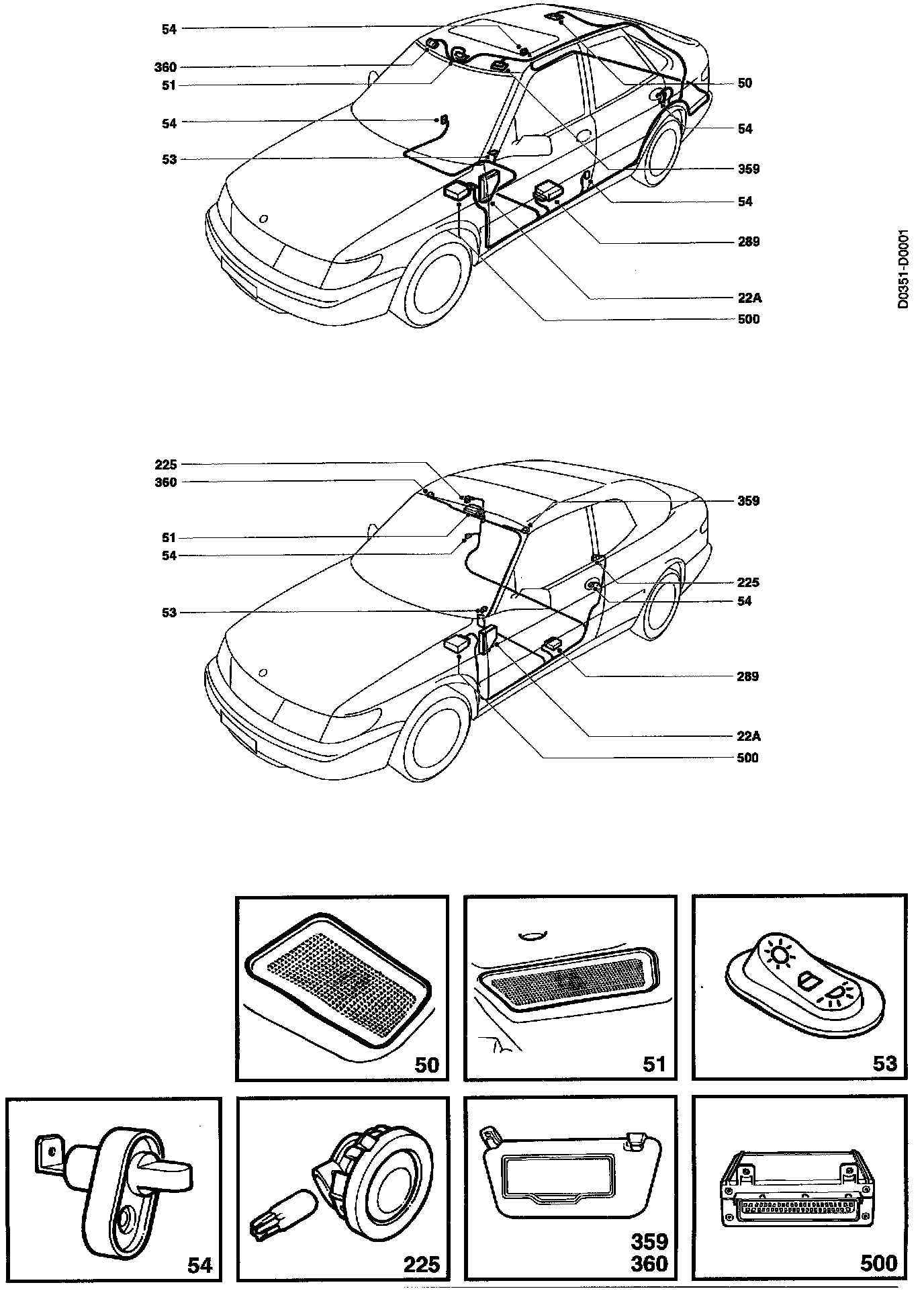 54 Door switch, interior lighting, at the bottom of the door openings.