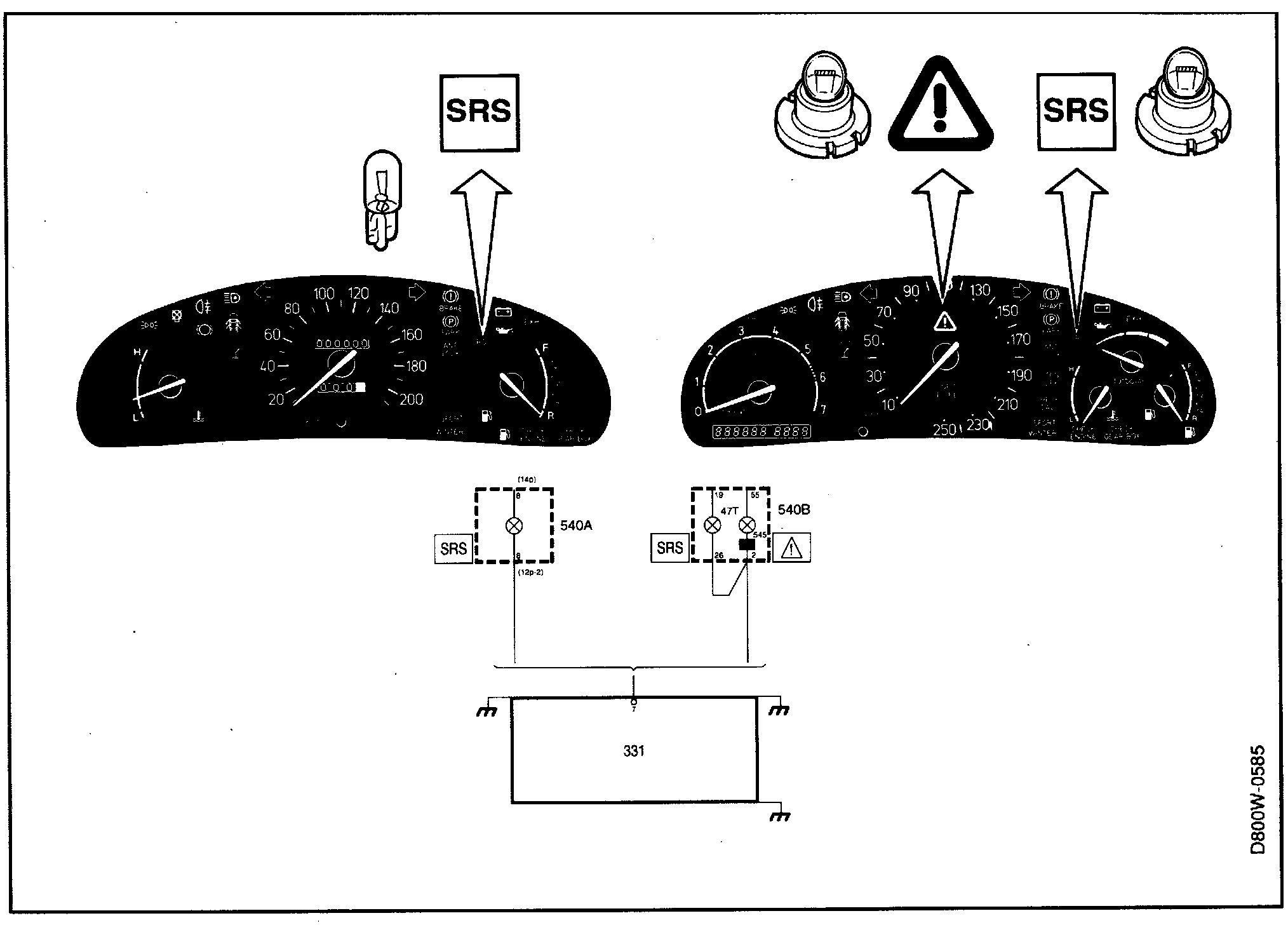 Warning LampFaults in the system are indicated by the SRS symbol in the main instrument lighting and staying lit. If the car is equipped with a central warning lamp, this lights together with the SRS lamp.