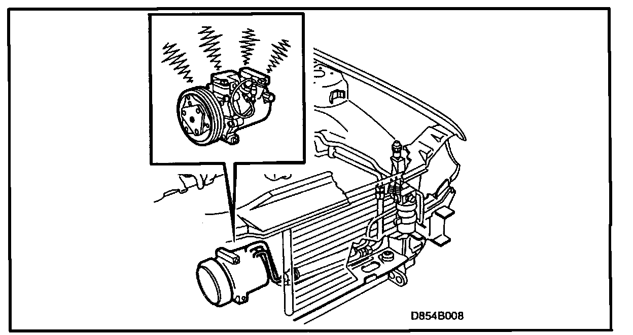 7. A metallic sound heard from the compressor can be caused by internal damage. See C. under procedure.