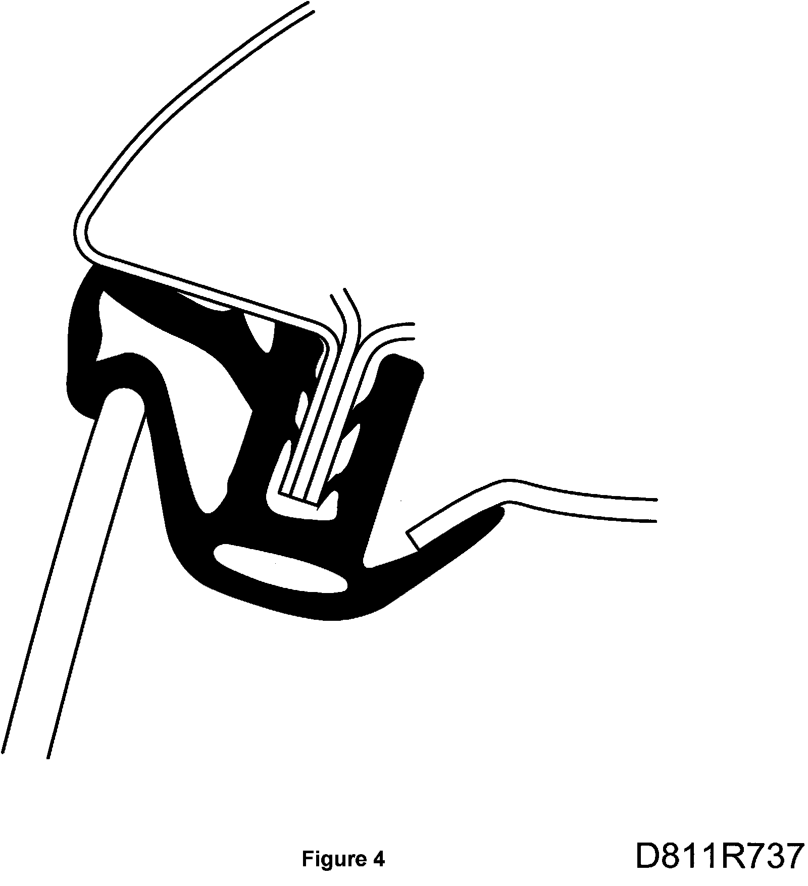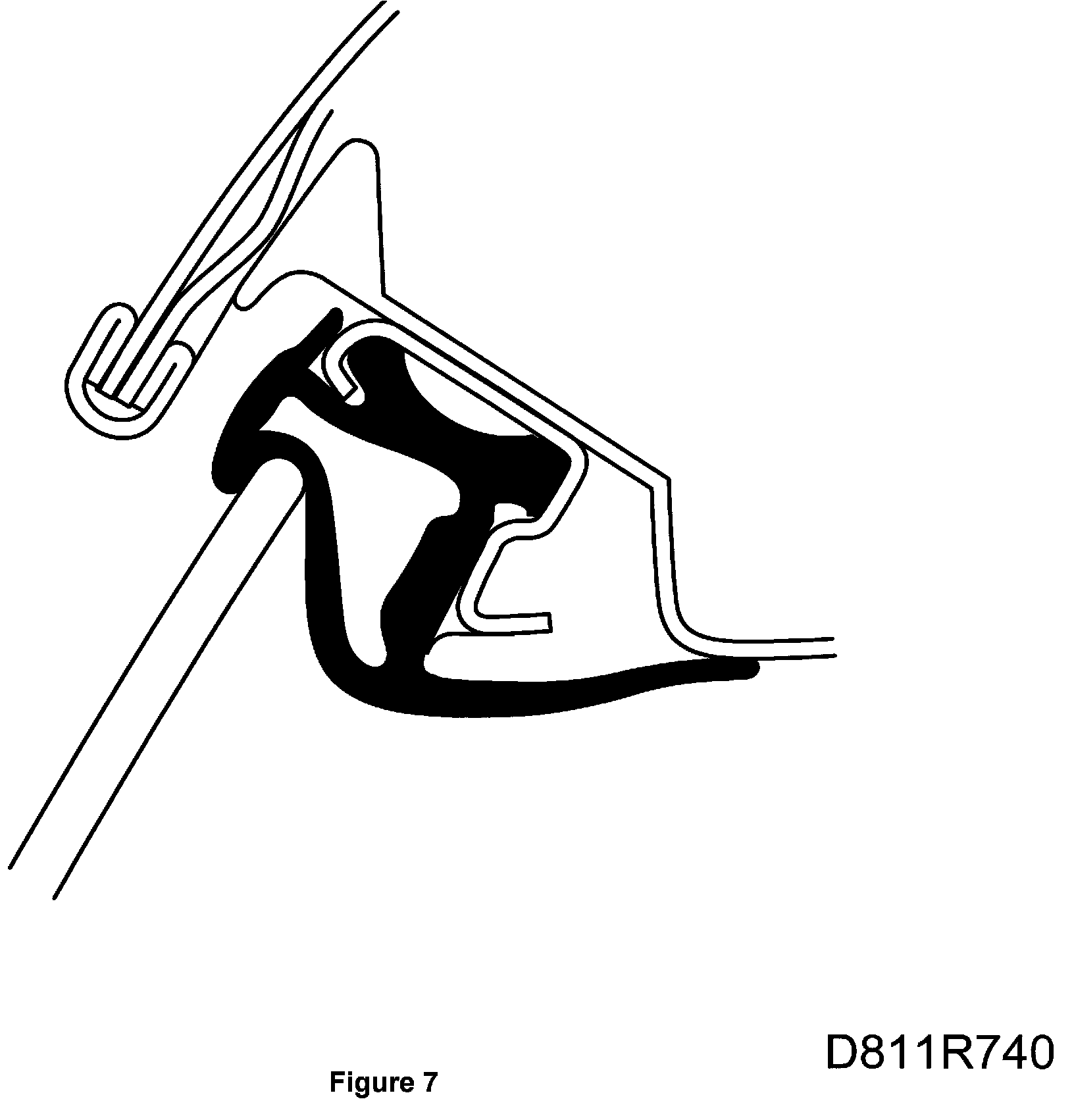 The door window should press against the windscreen frame seal when the door is closed. The edge of the door window should be positioned beneath the lip of the seal.