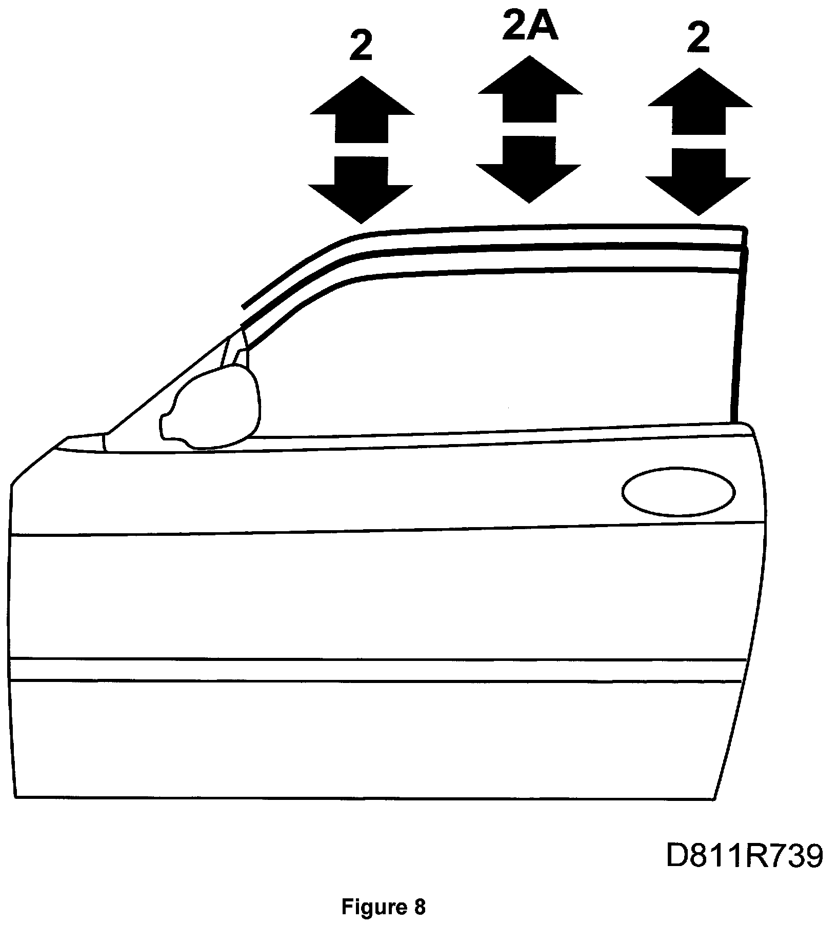 3. Check/adjust the upper door window stops. ADJUSTMENT 2 and ADJUSTMENT 2A.