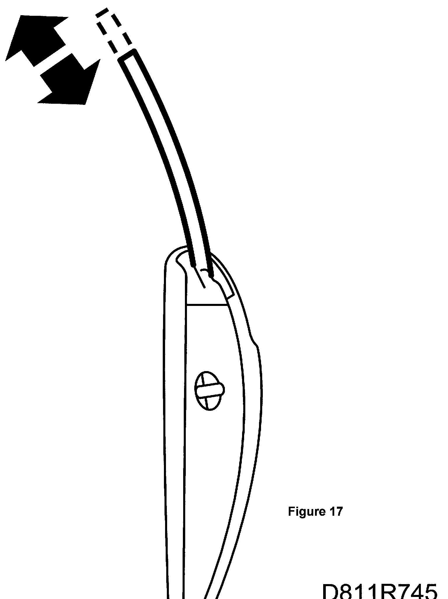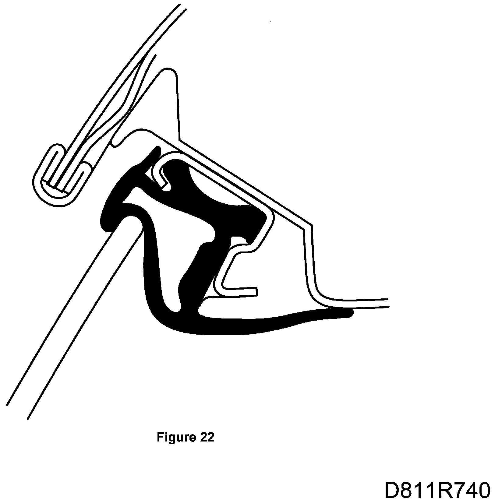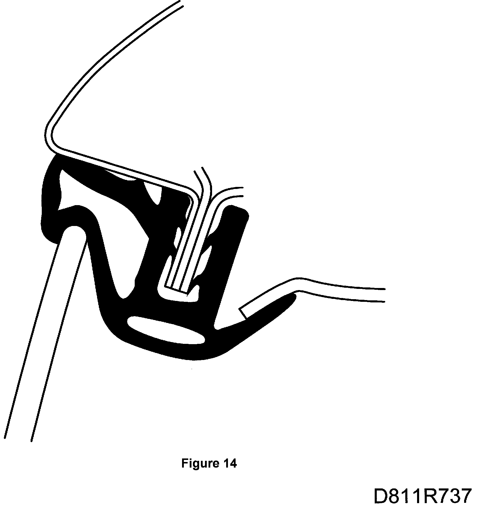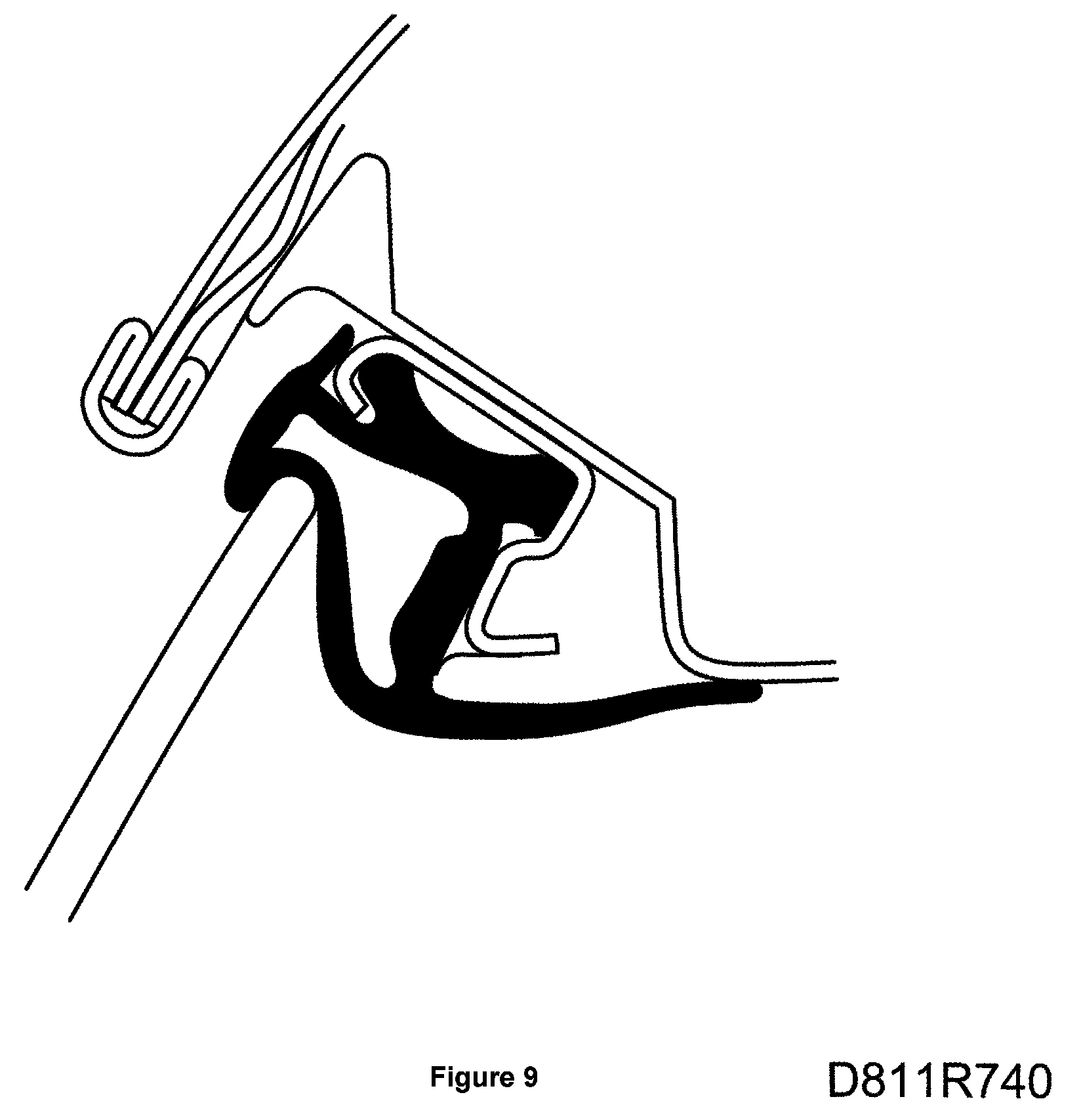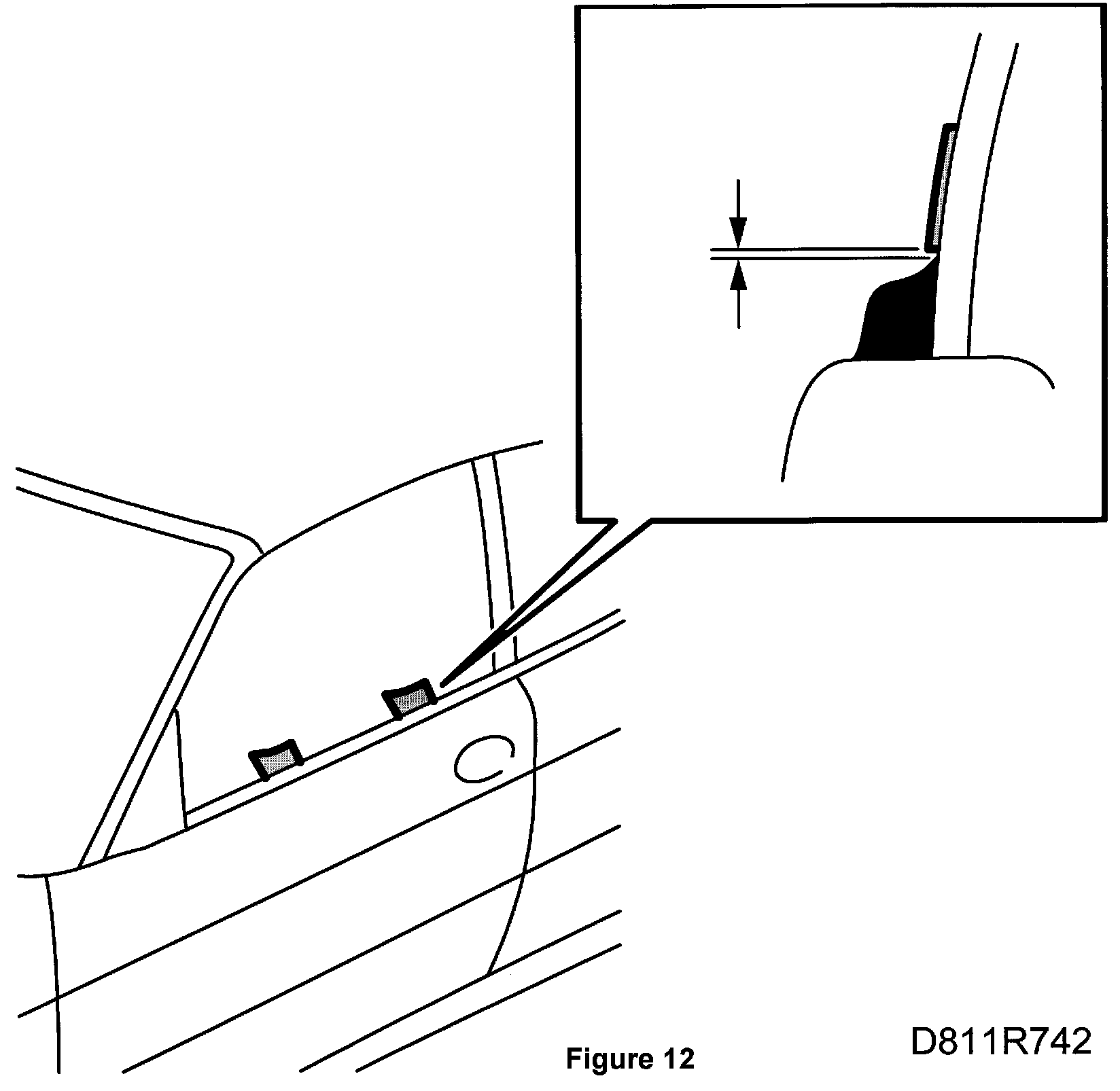 15. The pressure against the windscreen frame seal must be equal. The front edge of the door window should be flush with the front support rail seal at the front edge of the door.