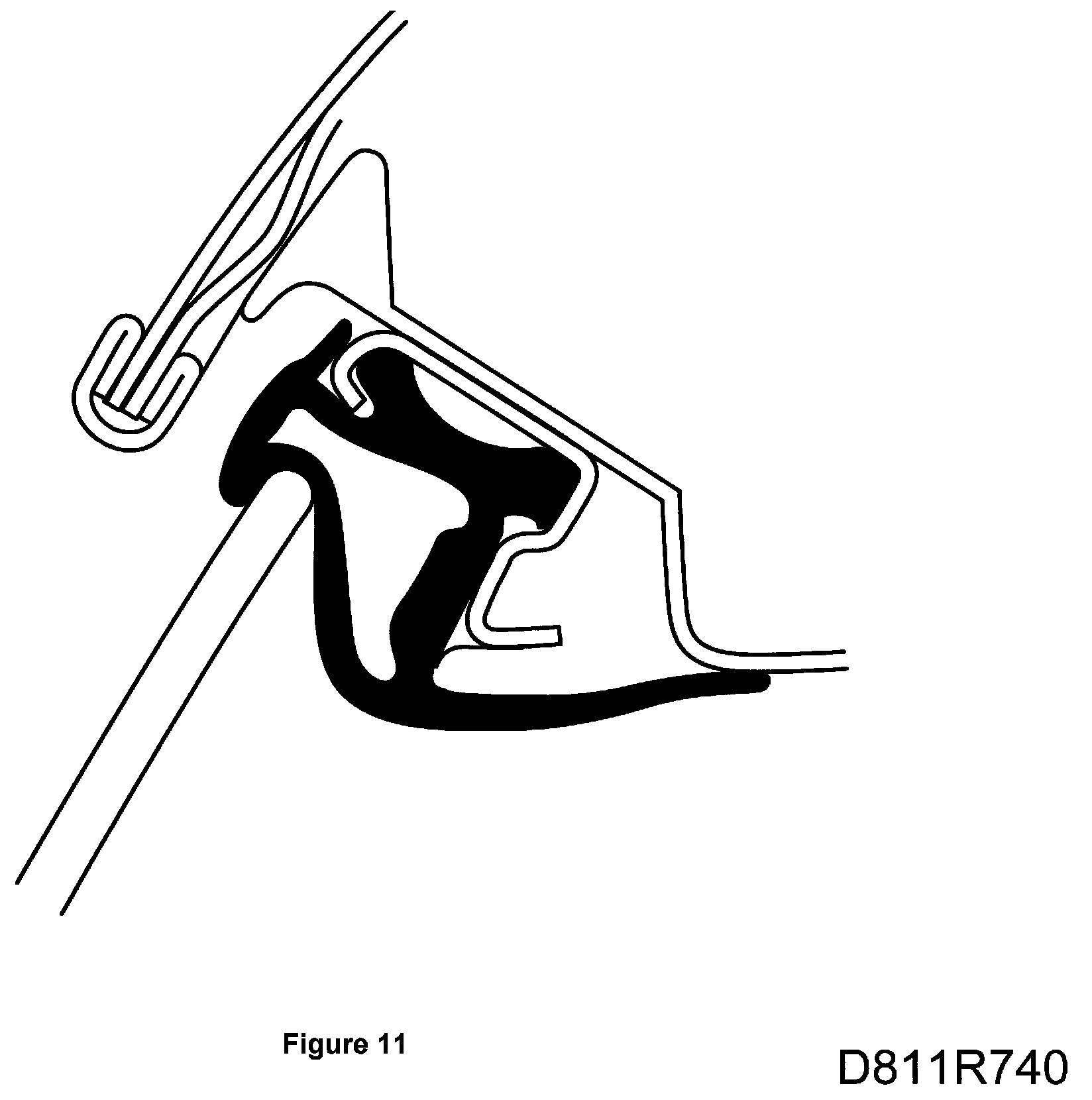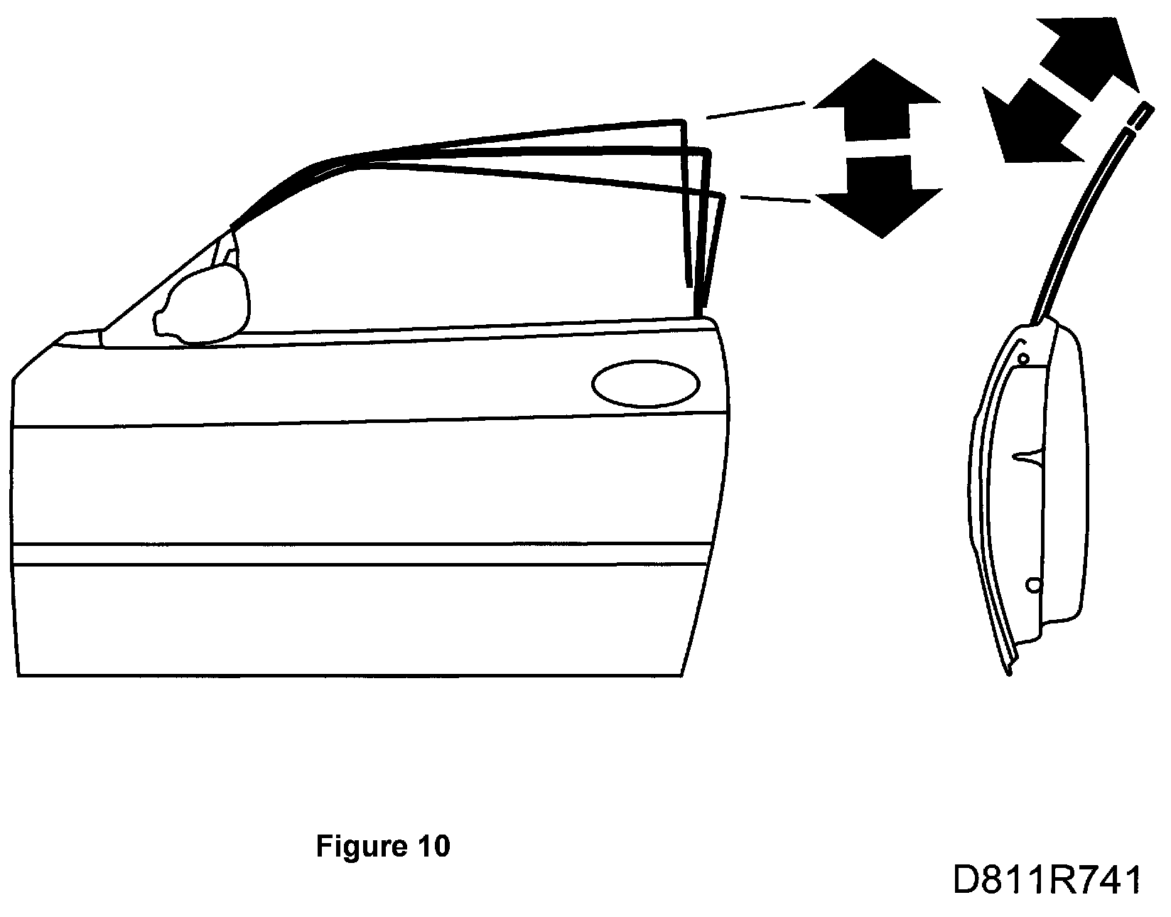 10. The force exerted by the mechanism must be distributed equally between the front and rear lifting arms. The pressure exerted by the door window against the soft top seals must be even. The edge of the door window should be positioned under the lip of the seals.