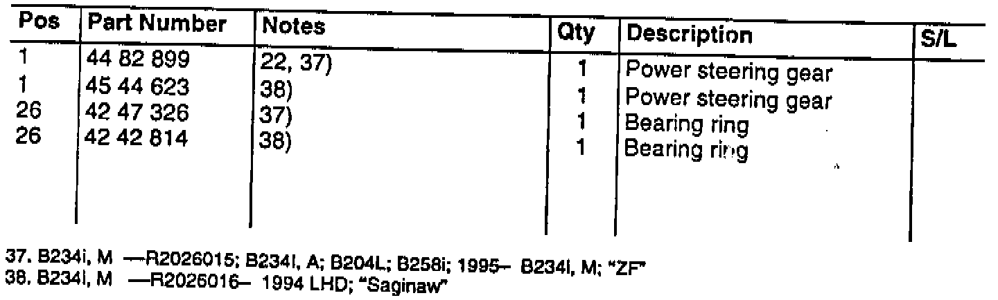Power Steering Gear - Microfiche Correction