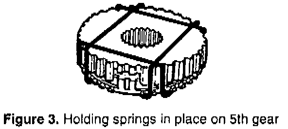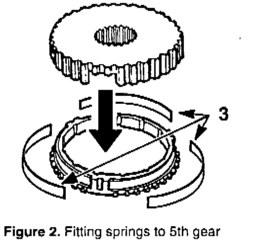 3. 5th Gear: Fit three leaf springs, P/N 87 43 809, between the synchromesh sleeve and hub (see item 3, Figure 2).