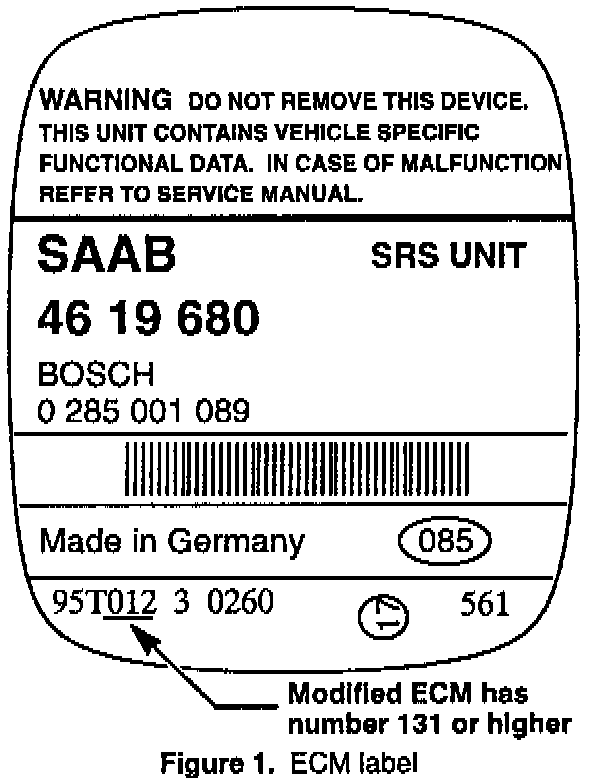All ECM's in stock are updated with no change to the part number. An updated ECM has production number "95Txxx" on the label. The "xxx" should read "131" or higher. See Figure 1.