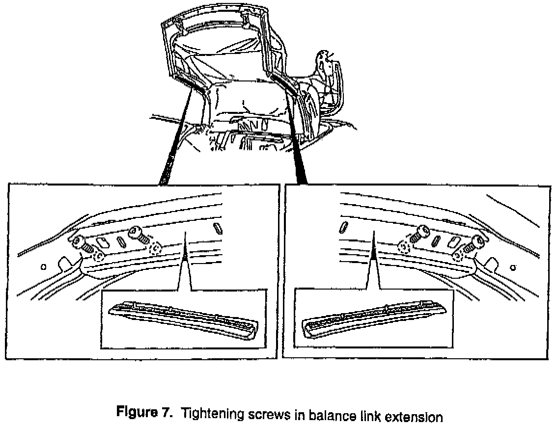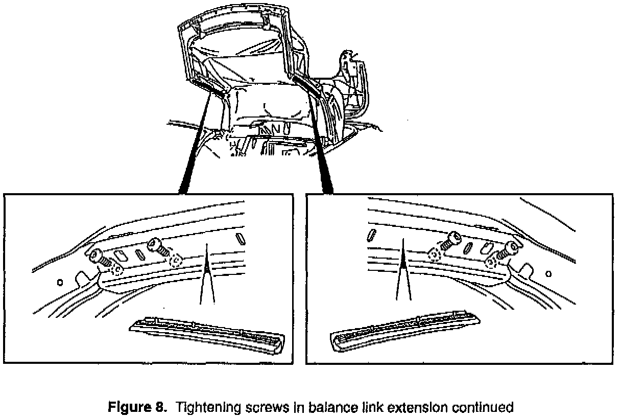 4. Remove the screws for the balance link's extension one at a time and apply thread locking adhesive, P/N 74 96 268 (or Loctite 242 blue), to the screw threads.