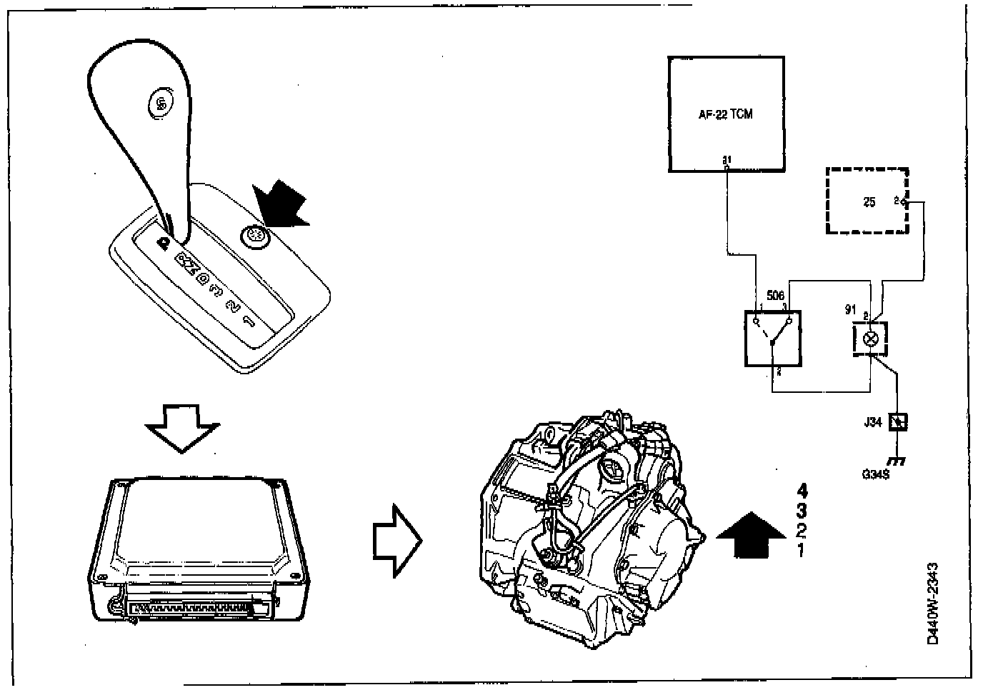 The power supply (ON/OFF) is controlled by the TCM, which gives a signal for shifting gears up or down, depending on speed, throttle position and the pre-selected driving program.