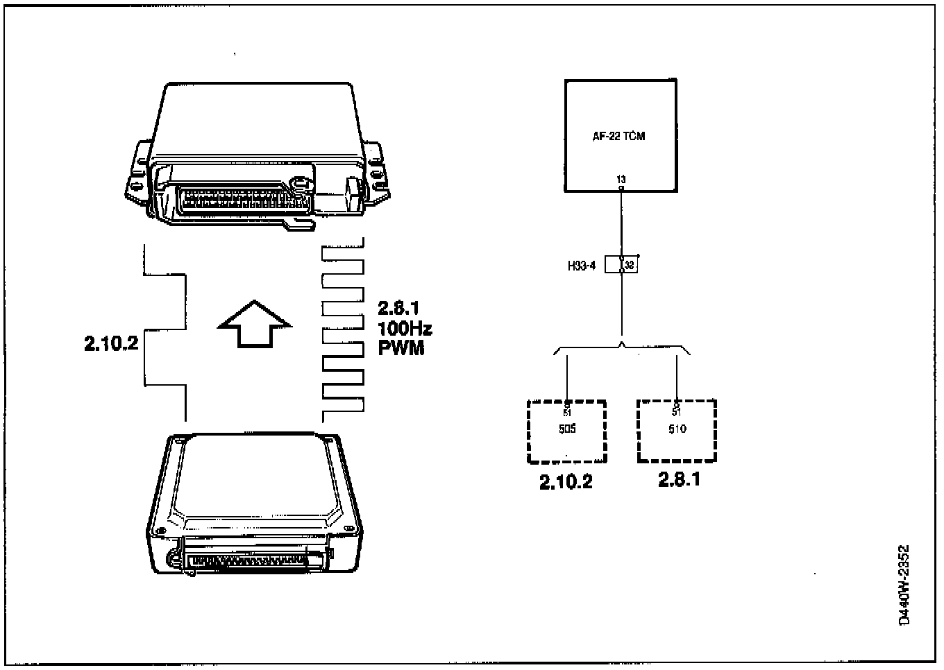 In order to control this, a signal is sent from pin 13 in the TCM to pin 51 in the ECM. The TCM knows when to shift gear and informs the MOTRONIC ECM about this. Torque limitation is carried out by the MOTRONIC ECM, which reduces the ignition causing the torque to fall.
